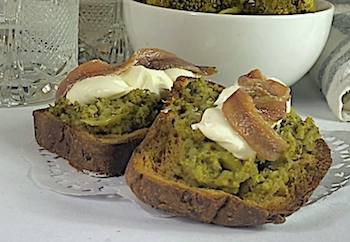 Crostoni con broccoli , acciughe e formaggio cremoso light
