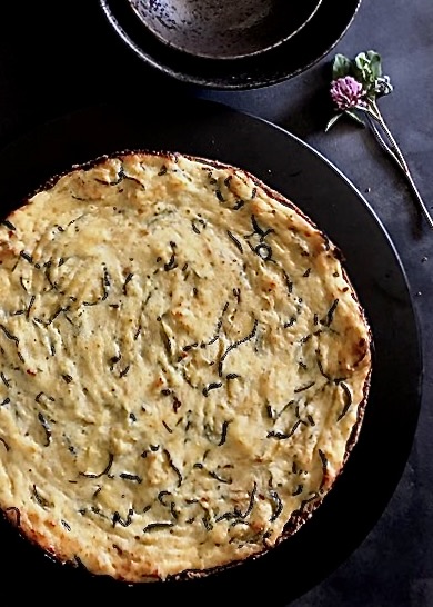 una bella fetta di Cheesecake low carb con ricotta e zucchine cotta al forno, da gustare rigorosamente all’aperto sotto il patio.