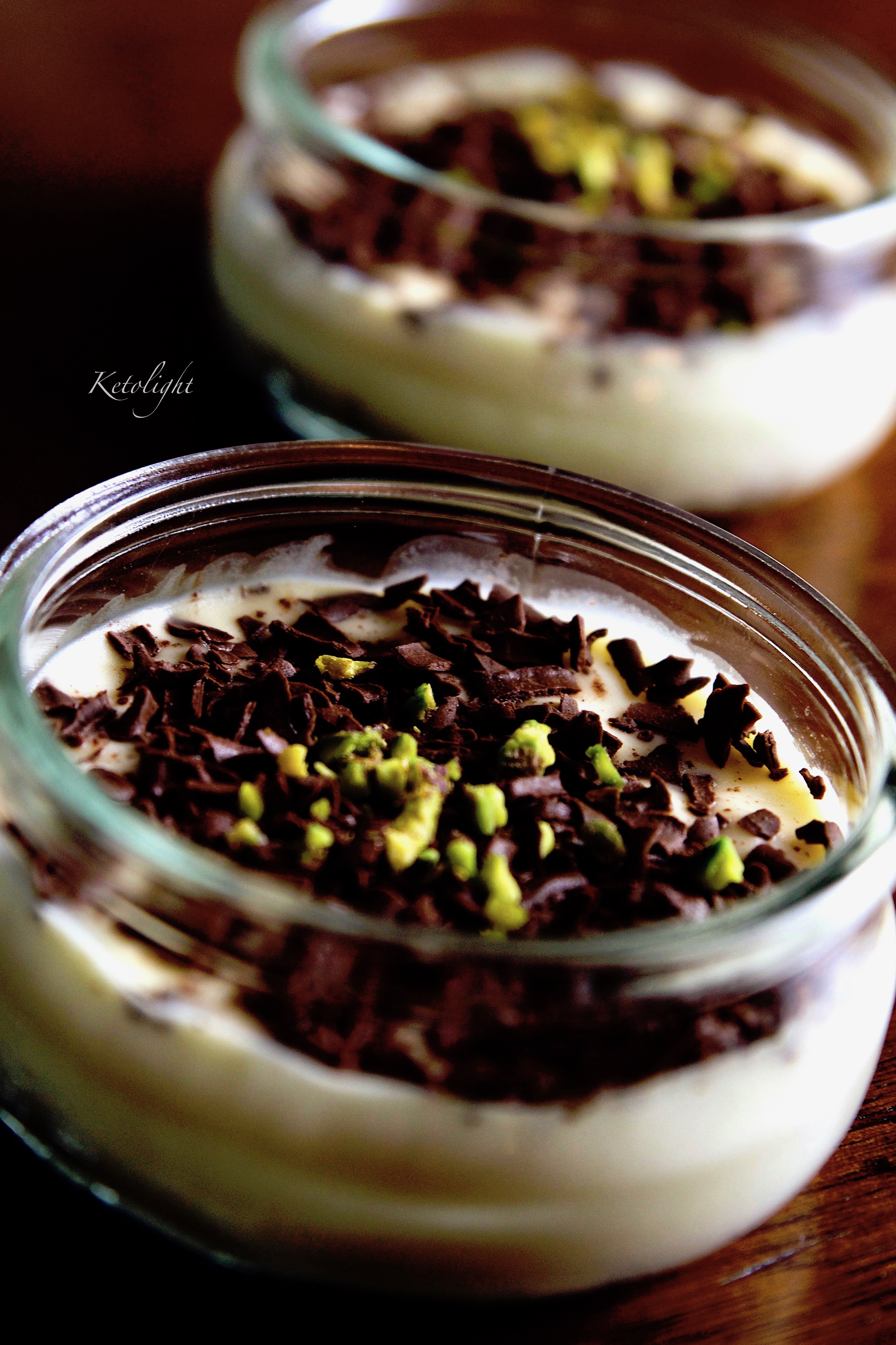Lavorate lo yogurt, il Philadelphia il KETOSUGAR VELO KETOLIGHT e l’essenza di vaniglia con le fruste fino ad ottenere una crema lucida. Frullate i KETOCANTUCCI KETOLIGHT con il burro fuso quindi mettete due cucchiai di composto in ogni bicchiere e livellateli con il dorso di un cucchiaio quindi, con l’aiuto di una sac a poche distribuite la crema al formaggio creando uno strato di crema di un paio di cm , grattugiatevi sopra il KETODARK 80 KETOLIGHT , spolverizzate con della granella di pistacchi e mettete in frigo a riposare per almeno un’ ora.