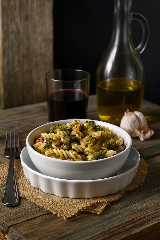 I broccoli diventano un condimento naturale che avvolge la pasta, valorizzandone la consistenza e rendendo ogni boccone equilibrato e soddisfacente.