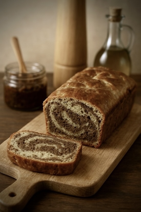 Questo plumcake marmorizzato al parmigiano e tapenade unisce la semplicità di ingredienti genuini al gusto deciso della tradizione mediterranea: la morbidezza dell’impasto si fonde con la sapidità delle olive e il profumo intenso del parmigiano.