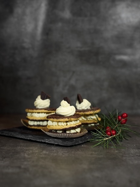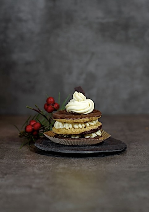 Appoggiate delicatamente il secondo frollino (anch’esso appena inzuppato) e ricopritelo allo stesso modo con i ciuffetti di crema.