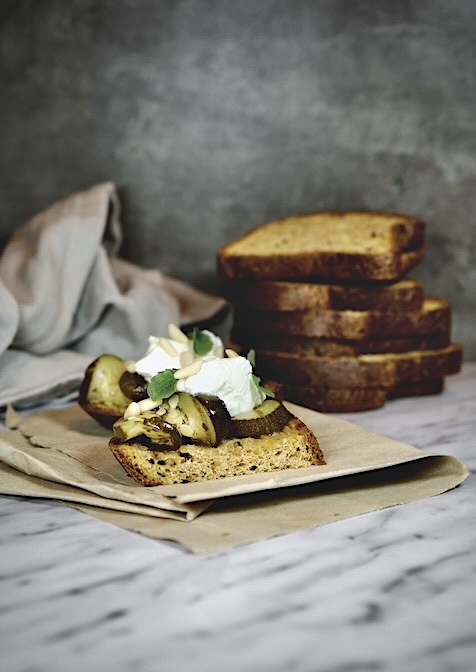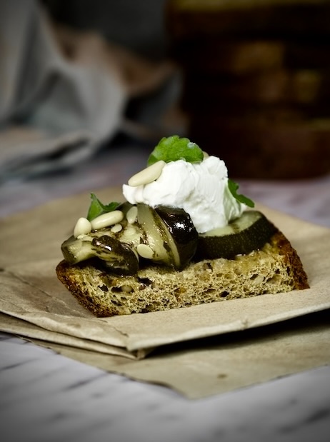 Adesso avete praticamente tutto pronto: al momento di servire vi basterà assemblare le bruschette mettendo sul KETOBREAD 360 tostato ancora tiepido, le zucchine marinate e decorare con una quenelle di Quark , i pinoli , qualche fogliolina di menta e...... buon appetito!!