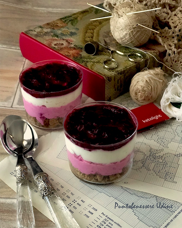 Un dessert al cucchiaio che si prepara in pochi minuti ma sa regalare una piccola coccola di gusto. Strati golosi e cremosi che si alternano in un bicchiere: la croccantezza del KETOBISCOTTO CEREALI E CIOCCOLATO sbriciolato, una soffice mousse allo yogurt al gusto frutti di bosco, una crema delicata al cioccolato bianco e, per finire, una fresca copertura diCOMPOSTA DI FRUTTA FRUTTI DI BOSCO KETOLIGHT .
