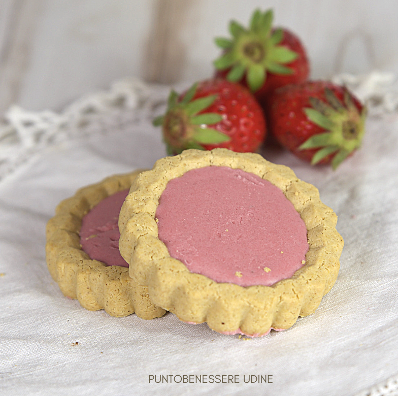 Crostatina fragrante con crema alla fragola, ideale per una dolce merenda o per una sfiziosa colazione. Senza glutine, ad alto contenuto di proteine, a basso contenuto di zuccheri.