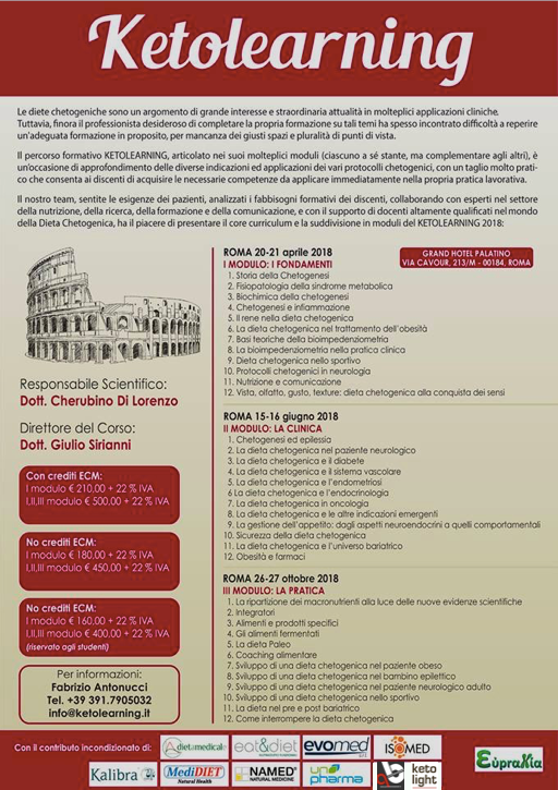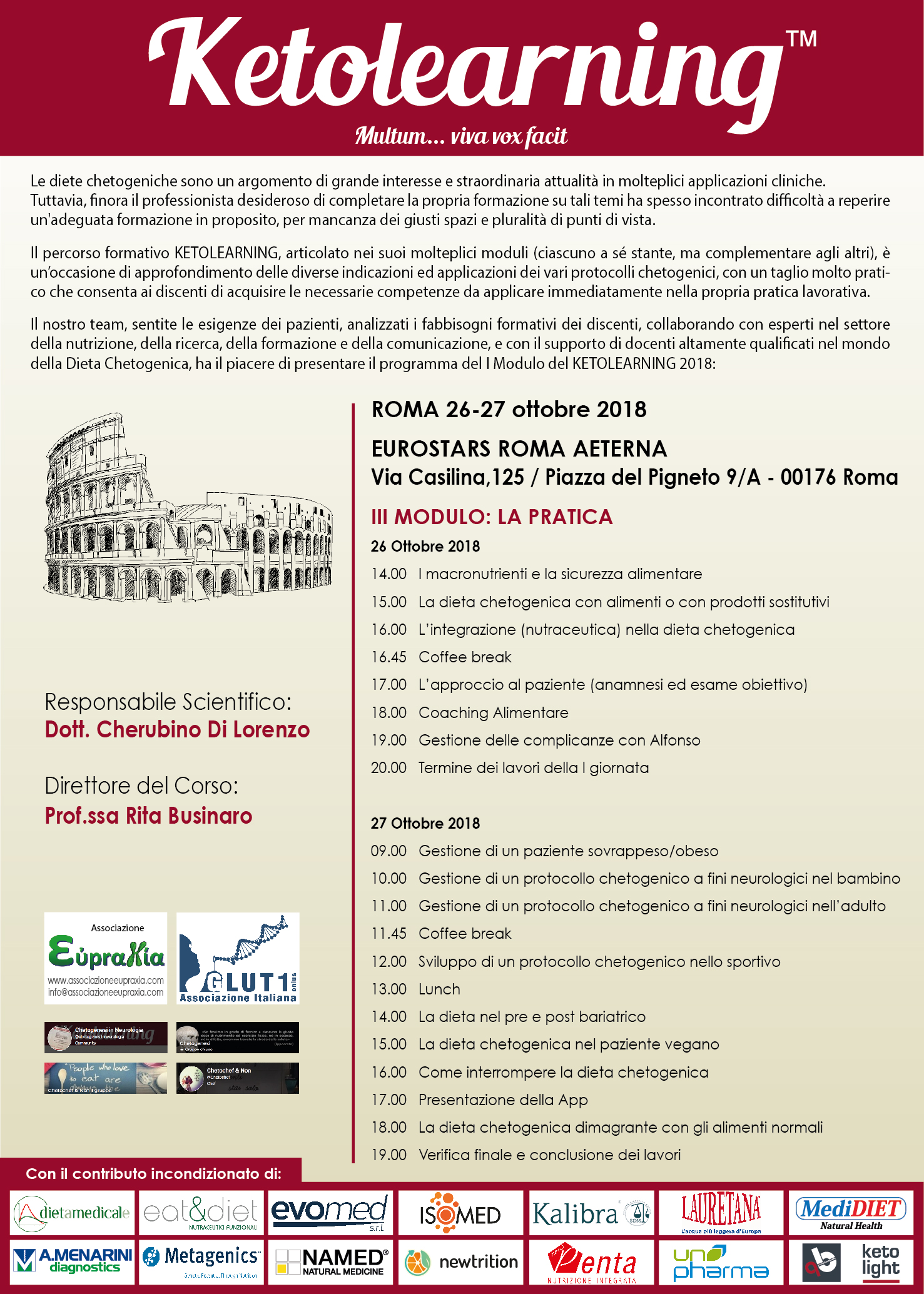 Siamo lieti di annunciare che saremo presenti al Ketolearning di Roma, II modulo, La Clinica, nei giorni venerdi 15 e sabato 16 giugno 2018.