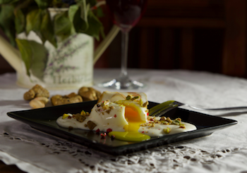 Uova barzotte su vellutata di parmigiano con crumble di Ketotaralli e pistacchi