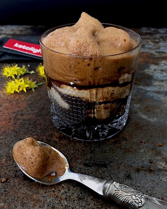 Oggi, dopo diverse occasioni per festeggiare dove il cibo è stato abbondante , volevamo stare leggeri ma non farci mancare il solito dolcetto della domenica così abbiamo abbozzato un insolito“caffè montato” arricchito con una mousse preparata con una busta proteica di KETODESSERT AL CAFFE' Ketolight e un cucchiaino di mascarpone .