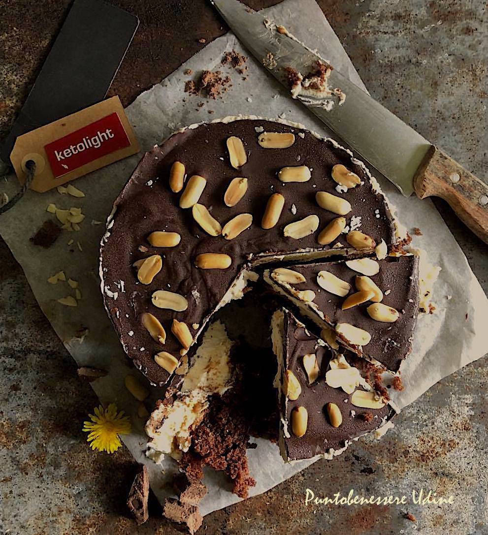 La base è una torta morbida al Burrodi di Arachidi e cacao che abbiamo trovato tra le ricette di Maryann Mazzella all'interno della pagina facebook il cheto mondo di mareblucobalto dove si possono trovare tantissime ricette low carb e per la farcia abbiamo provato a a modificare un pò la mousse proposta ,sempre da lei ,nella sua torta di compleanno aggiungendo anche del BURRO DI ARACHIDI SMOOTH