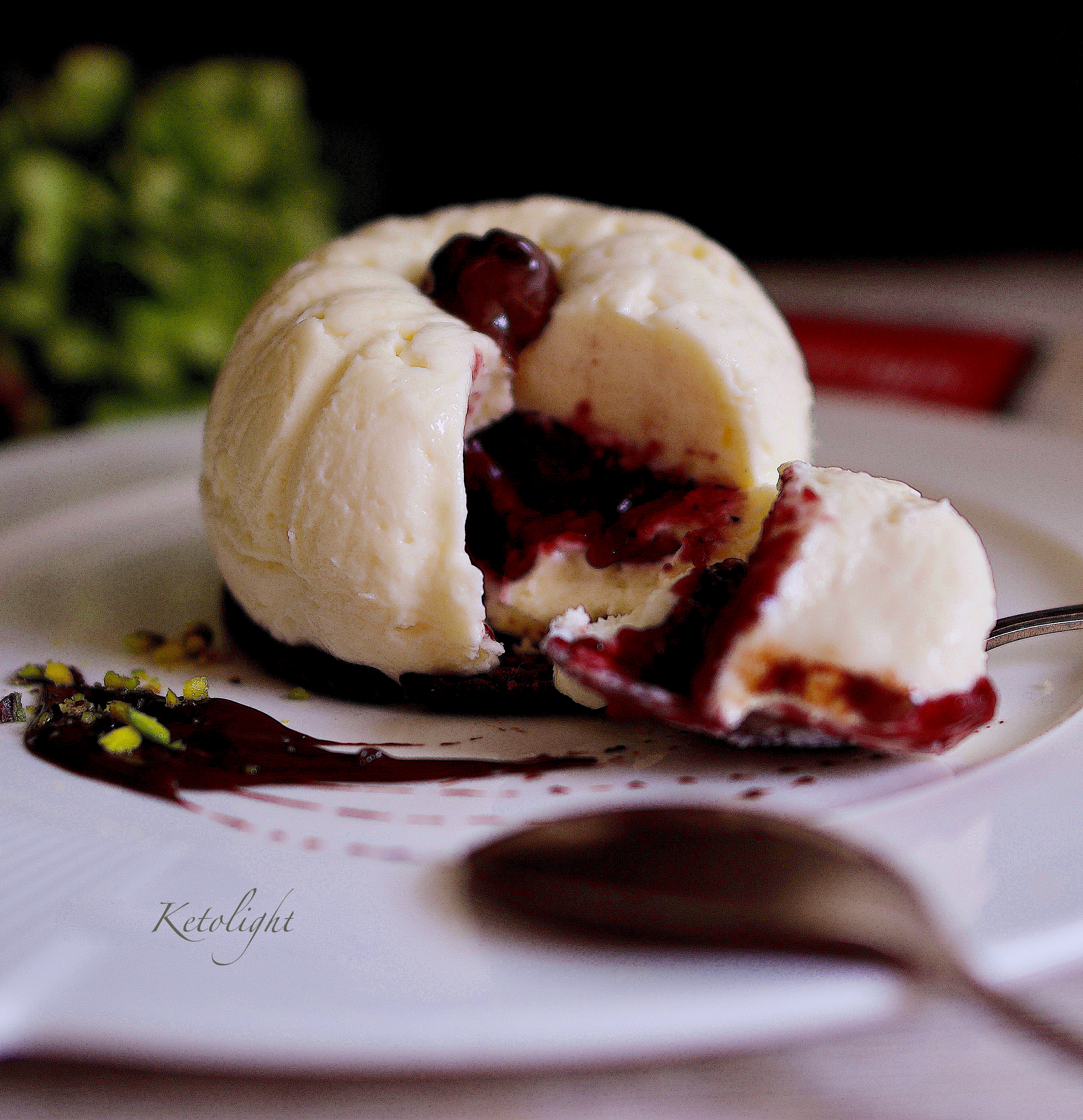La golosa coccola di oggi è una mini-cheesecake low carb per due e siccome il bello di questo dolce è che può essere personalizzato in base ai propri gusti noi, l’abbiamo preparata con panna , mascarpone , yogurt greco e un preparato proteico Ketolight al gusto cocco che conferisce compatezza e sapore. All’interno poi, abbiamo inserito una cucchiaiata di COMPOSTA DI FRUTTI DI BOSCO BIO Ketolight ed in fine , per la base , abbiamo creato un croccantissimo disco di cioccolato e panna a cui abbiamo aggiunto della granella di pistacchio.