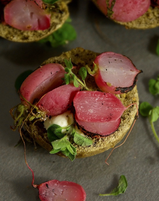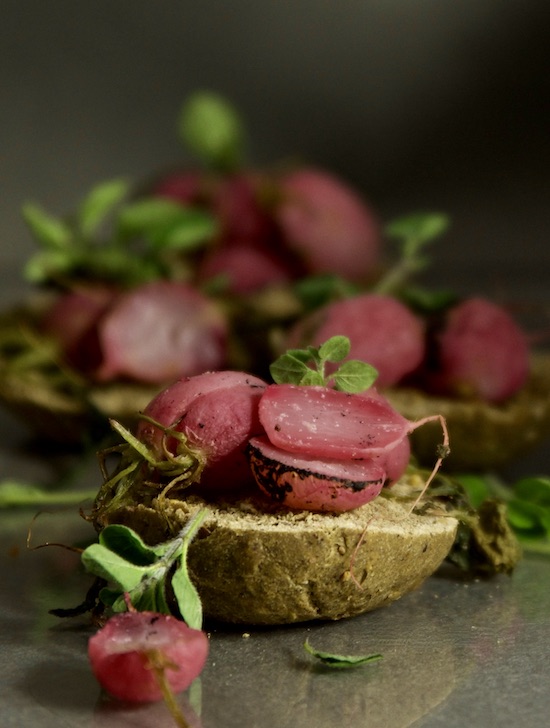 Cheto-pane homemade con robiola a km 0 e ravanelli arrostiti per un’apericena che profuma di primavera…