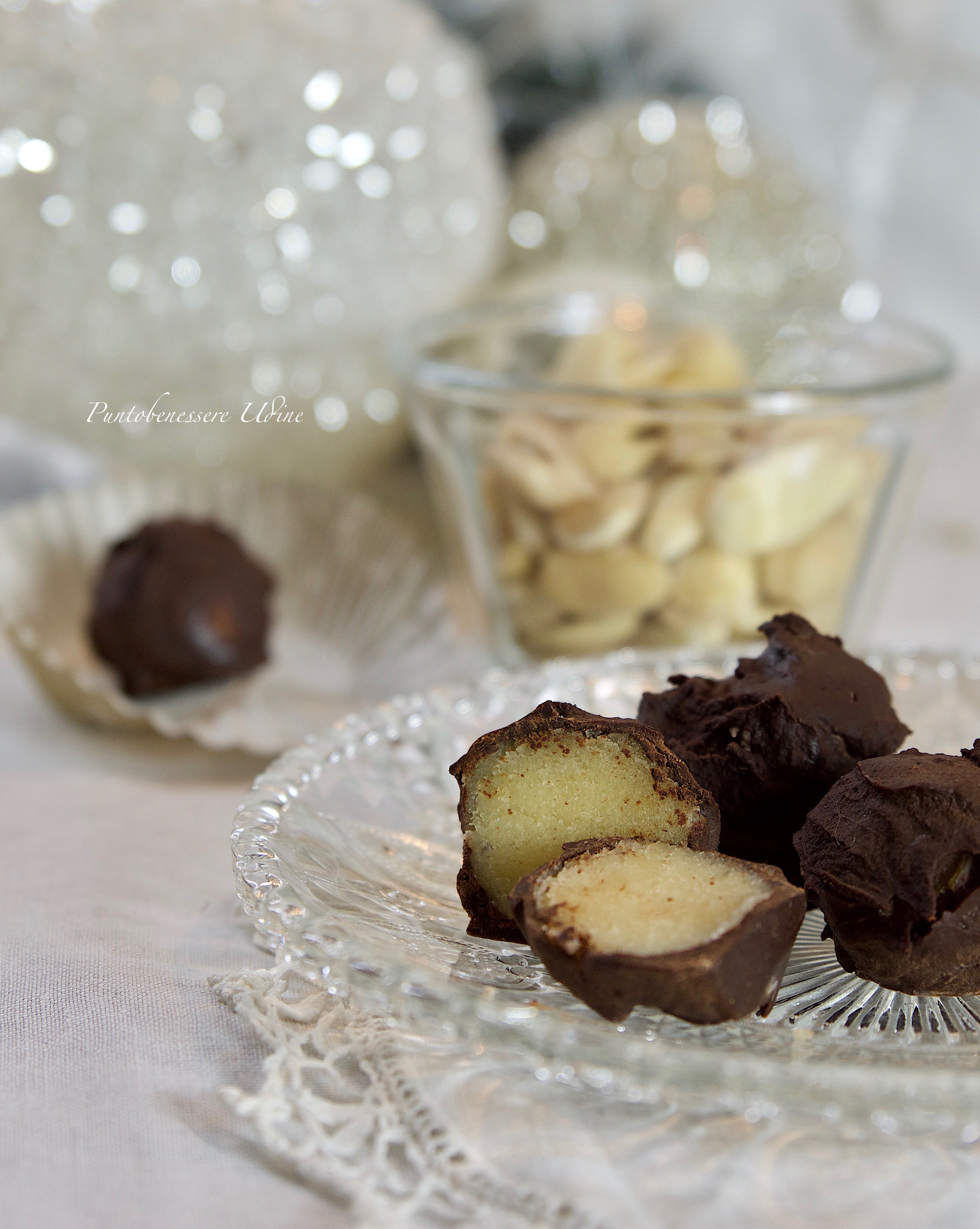Oggi noi ne abbiamo preparato una quantità abbondante e con una parte abbiamo realizzato dei bonbon rivestiti al cioccolato, con la restante prepareremo i classici ricciarelli .