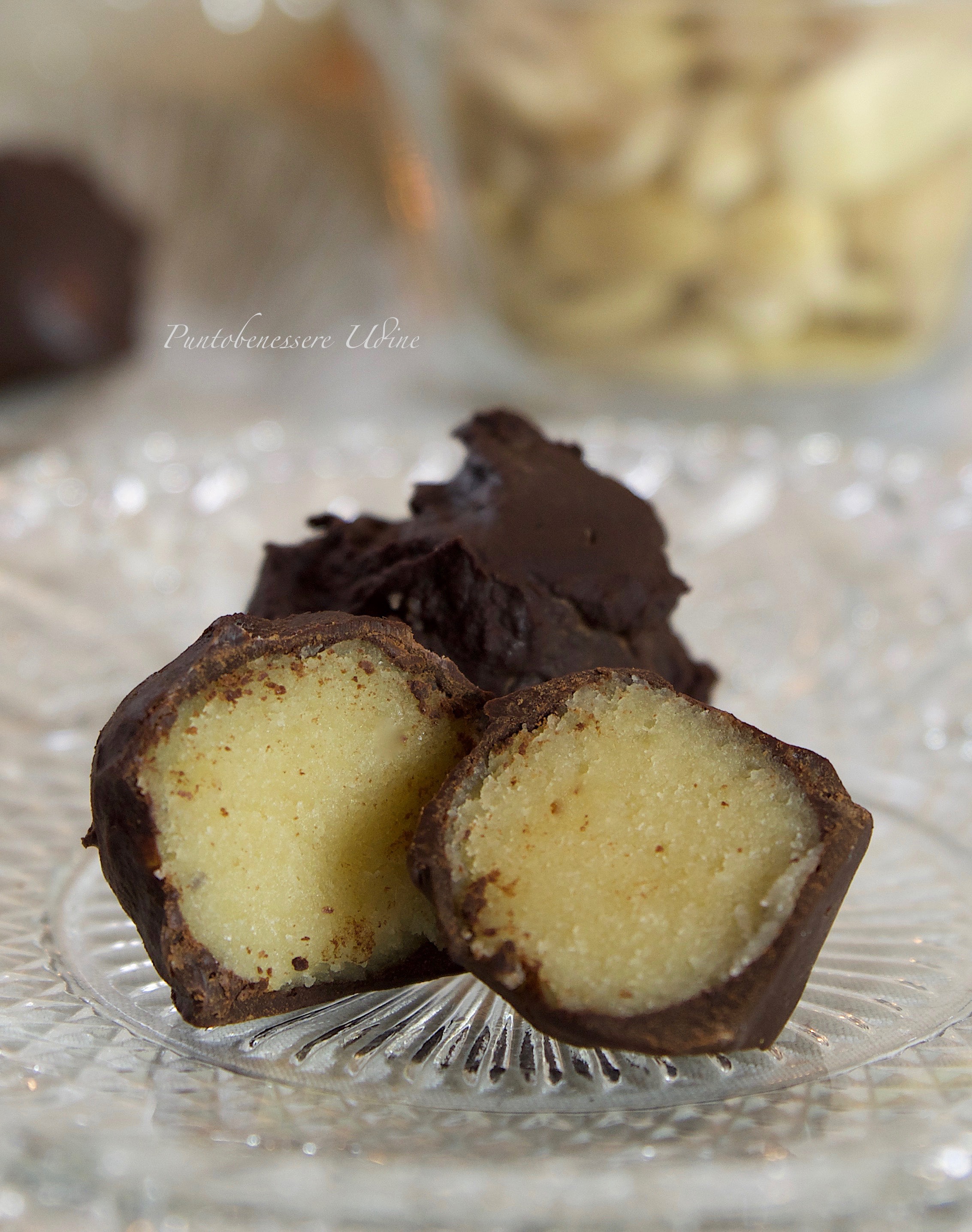 Il giorno dopo abbiamo formate delle palline, tutte della stessa dimensione, che abbiamo rotolato nel cioccolato sciolto a bagnomaria e poi disposte su un piatto e lasciate riposare in frigorifero per un paio di ore prima di servire.