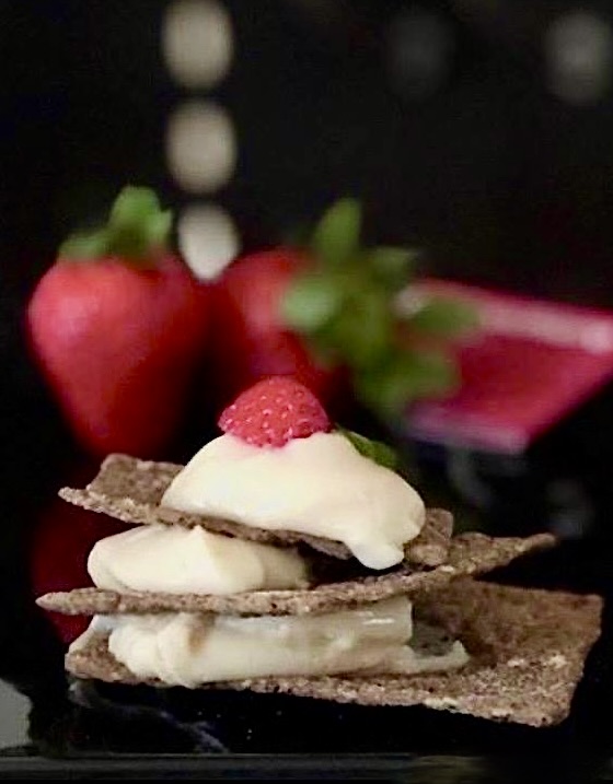 Spolverizzate con del KETOSUGAR VELO (eritritolo a velo) (clicca qui ) e decorate con mezza fragola.