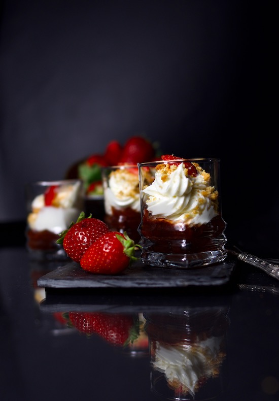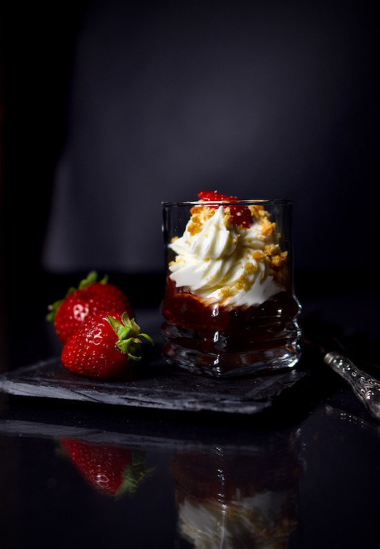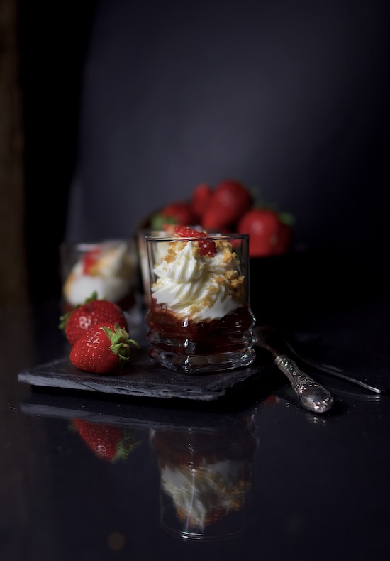 Siccome abbiamo deciso di invertire l’assemblaggio degli ingredienti, incominciate con l’adagiare alla base un cucchiaino da te di COMPOSTA DI FRAGOLE BIO, sopra , con l’aiuto di una saccapoche, distribuite la crema di formaggio fino a riempire il bicchierino ed infine sbriciolate sopra ogni coppetta i PETIT BURRO VANIGLIA e decorate con un un pezzetto di fragola.