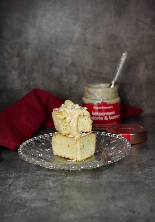 Sfornare , fate raffreddare , tagliare in quadrotti e se volete potete decorate con un cucchiaino di KETOCREAN MANDORLE & KUMARU e qualche mandorla tritata altrimenti spolverizzate di KETOSUGAR A VELO e poi godetevi questa ghiottoneria !!