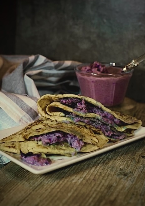 La leggera sapidità delle crepes si fonde con la dolcezza naturale del cavolo rosso creando un equilibrio perfetto, di quelli che scaldano il cuore e rendono la cena un momento da assaporare lentamente.