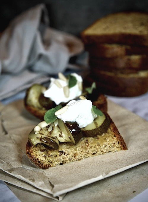 Adesso avete praticamente tutto pronto: al momento di servire vi basterà assemblare le bruschette mettendo sul KETOBREAD 360 tostato ancora tiepido, le zucchine marinate e decorare con una quenelle di Quark , i pinoli , qualche fogliolina di menta e...... buon appetito!!