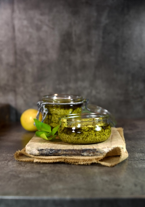Potete conservare il pesto alcuni giorni in frigo aggiungendo in superficie dell'olio d'oliva o potete congelarlo e scongelarlo a temperatura ambiente.