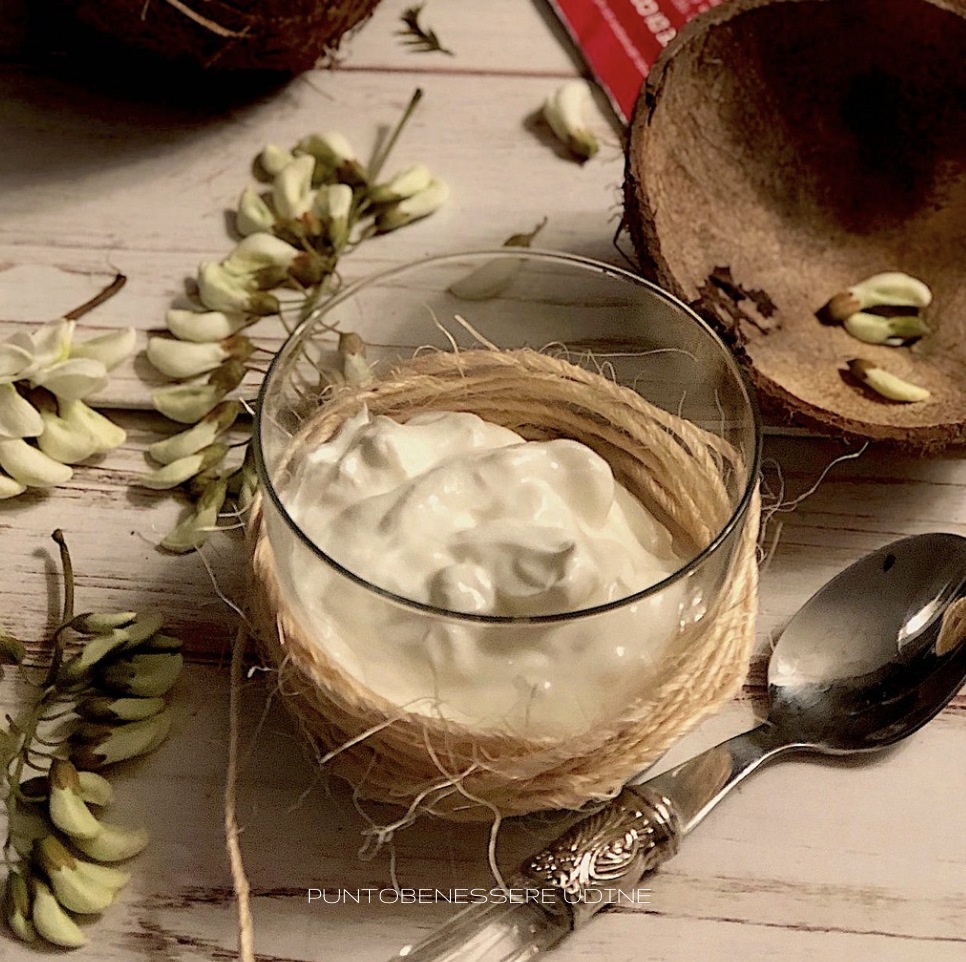 INGREDIENTI:proteine del lattte*(emulsionante:lecitina), fiocchi di cioccolato (saccarosio, massa magra di cacao in polvere, grassi del latte*, emulsionante:lecitina di soia*, aroma naturale di vaniglia)(9%), yogurt* magro in polvere, amido modificato, rapè di cocco (2%), addensante:carragenina e gomma di xantano, sale, aromi, antiagglomerante:magnesio e potassio carbonati, edulcorante:sucralosio.