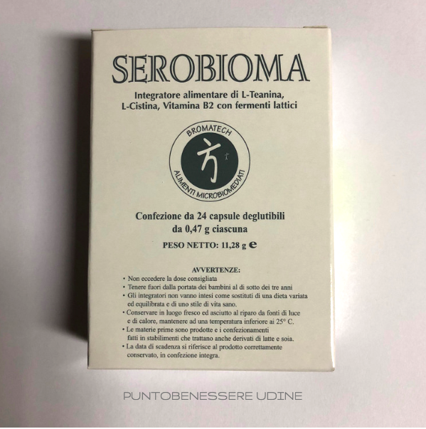 Serobioma è un integratore alimentare a base di fermenti lattici, vitamina B2, L-Cistina e L-Teanina.
